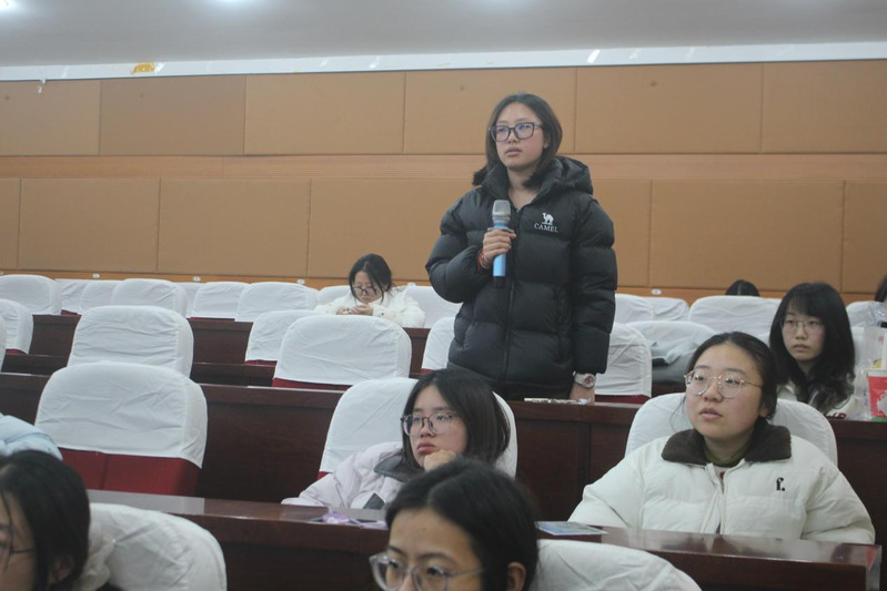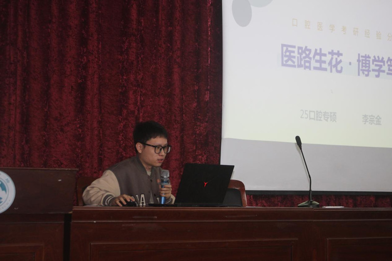 在随后的互动环节,现场气氛热烈,同学们踊跃提问,其中24级口腔医学专业的学妹提出想了解”口腔专硕与学硕如何选择”。口腔医学专业的研究生对此作出清晰全面的解答,他深入剖析了专硕侧重临床实践、学硕偏重科研培养的核心区别,并以“想早当医生选专硕,想做科研读博选学硕”的金句为大家指明了方向。